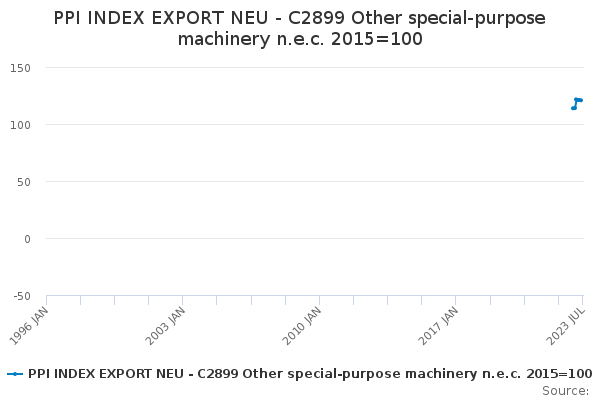Download this time seriesPPI INDEX EXPORT NEU - C2899 Other special-purpose machinery n.e.c. 2015=100