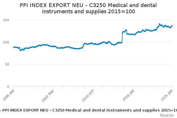Download this time seriesPPI INDEX EXPORT NEU - C3250 Medical and dental instruments and supplies 2015=100