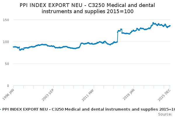 Download this time seriesPPI INDEX EXPORT NEU - C3250 Medical and dental instruments and supplies 2015=100