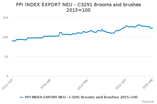 Download this time seriesPPI INDEX EXPORT NEU - C3291 Brooms and brushes 2015=100