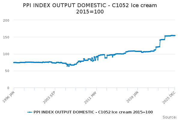 Download this time seriesPPI INDEX OUTPUT DOMESTIC - C1052 Ice cream 2015=100