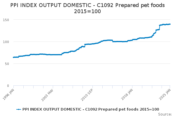 Download this time seriesPPI INDEX OUTPUT DOMESTIC - C1092 Prepared pet foods 2015=100