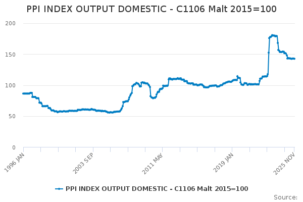 Download this time seriesPPI INDEX OUTPUT DOMESTIC - C1106 Malt 2015=100