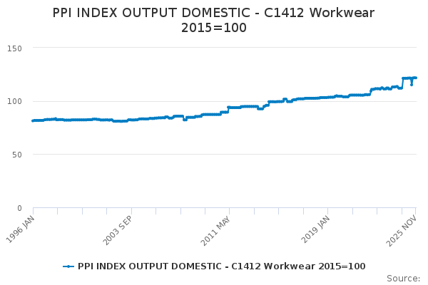 Download this time seriesPPI INDEX OUTPUT DOMESTIC - C1412 Workwear 2015=100