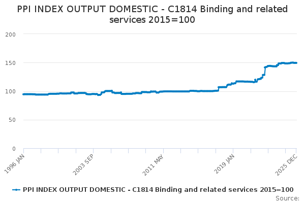 Download this time seriesPPI INDEX OUTPUT DOMESTIC - C1814 Binding and related services 2015=100