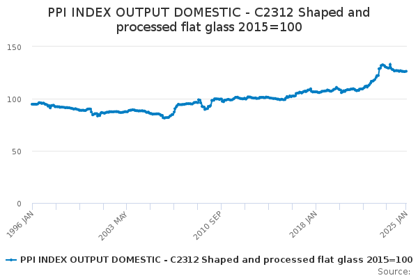 Download this time seriesPPI INDEX OUTPUT DOMESTIC - C2312 Shaped and processed flat glass 2015=100