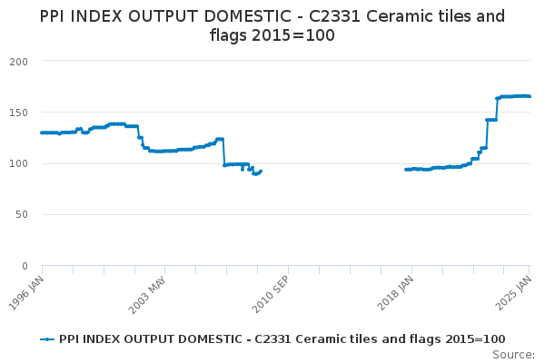 Download this time seriesPPI INDEX OUTPUT DOMESTIC - C2331 Ceramic tiles and flags 2015=100