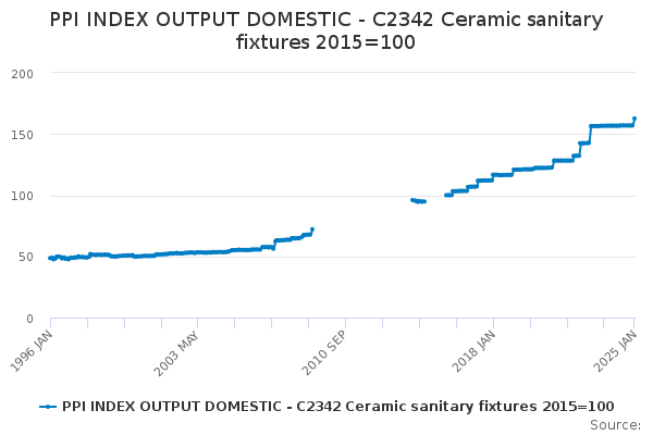 Download this time seriesPPI INDEX OUTPUT DOMESTIC - C2342 Ceramic sanitary fixtures 2015=100