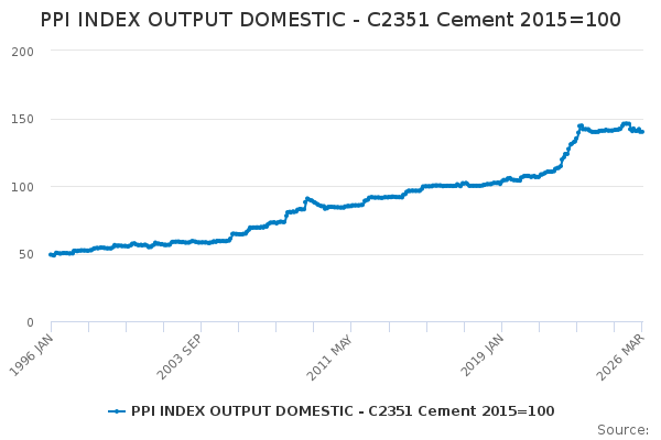 Download this time seriesPPI INDEX OUTPUT DOMESTIC - C2351 Cement 2015=100