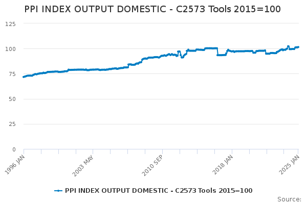 Download this time seriesPPI INDEX OUTPUT DOMESTIC - C2573 Tools 2015=100