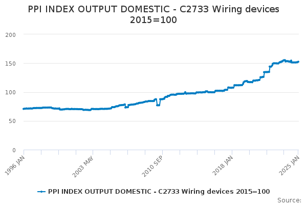 Download this time seriesPPI INDEX OUTPUT DOMESTIC - C2733 Wiring devices 2015=100