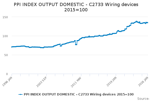 Download this time seriesPPI INDEX OUTPUT DOMESTIC - C2733 Wiring devices 2015=100