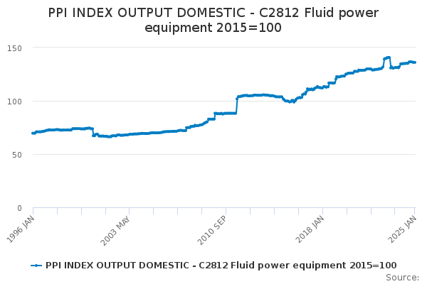 Download this time seriesPPI INDEX OUTPUT DOMESTIC - C2812 Fluid power equipment 2015=100