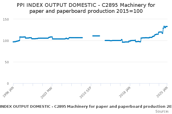 Download this time seriesPPI INDEX OUTPUT DOMESTIC - C2895 Machinery for paper and paperboard production 2015=100