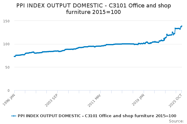 Download this time seriesPPI INDEX OUTPUT DOMESTIC - C3101 Office and shop furniture 2015=100