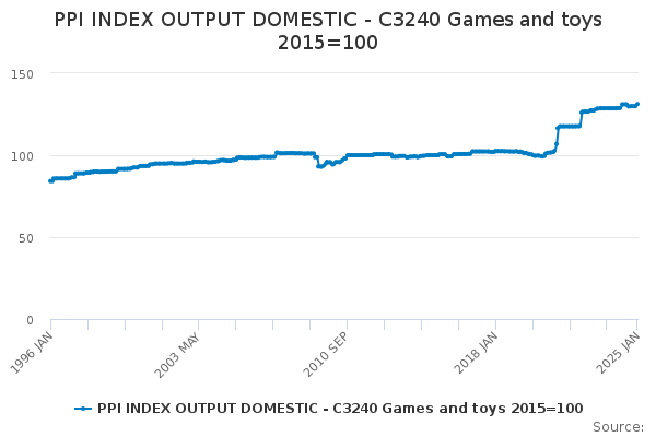 Download this time seriesPPI INDEX OUTPUT DOMESTIC - C3240 Games and toys 2015=100