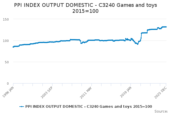 Download this time seriesPPI INDEX OUTPUT DOMESTIC - C3240 Games and toys 2015=100
