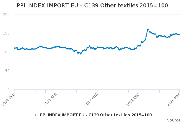 Download this time seriesPPI INDEX IMPORT EU - C139 Other textiles 2015=100