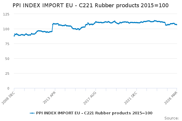 Download this time seriesPPI INDEX IMPORT EU - C221 Rubber products 2015=100