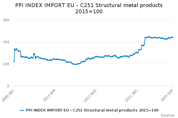 Download this time seriesPPI INDEX IMPORT EU - C251 Structural metal products 2015=100