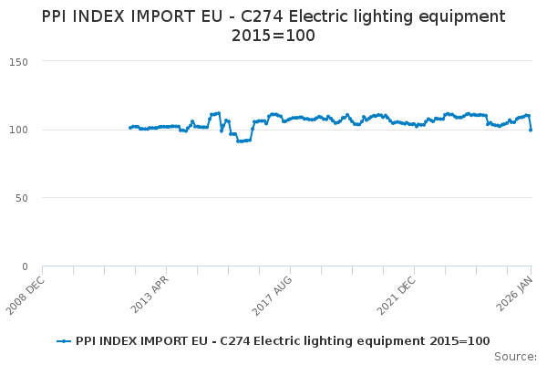 Download this time seriesPPI INDEX IMPORT EU - C274 Electric lighting equipment 2015=100