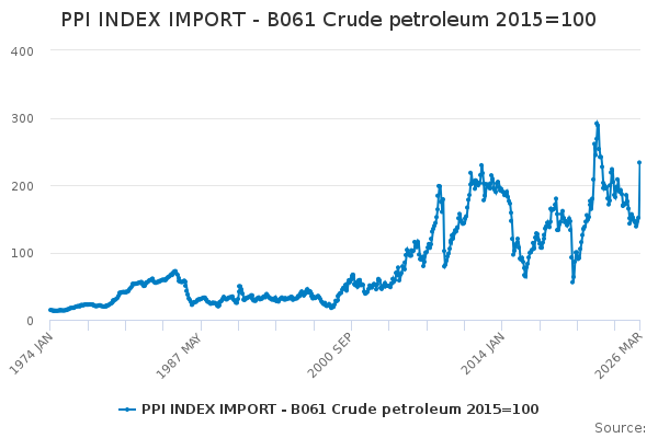 Download this time seriesPPI INDEX IMPORT - B061 Crude petroleum 2015=100