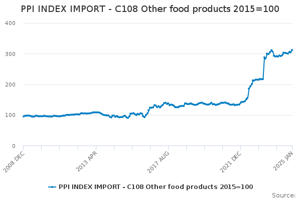 Download this time seriesPPI INDEX IMPORT - C108 Other food products 2015=100