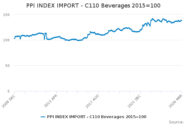 Download this time seriesPPI INDEX IMPORT - C110 Beverages 2015=100