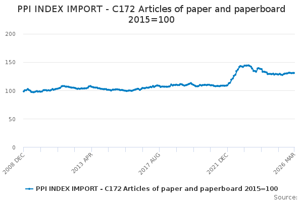 Download this time seriesPPI INDEX IMPORT - C172 Articles of paper and paperboard 2015=100