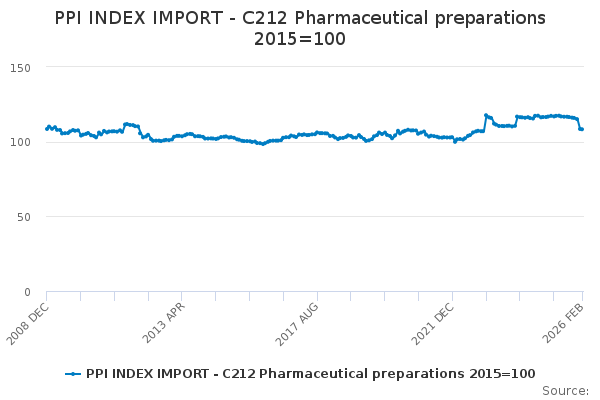 Download this time seriesPPI INDEX IMPORT - C212 Pharmaceutical preparations 2015=100