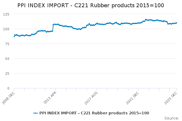 Download this time seriesPPI INDEX IMPORT - C221 Rubber products 2015=100