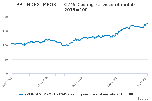 Download this time seriesPPI INDEX IMPORT - C245 Casting services of metals 2015=100