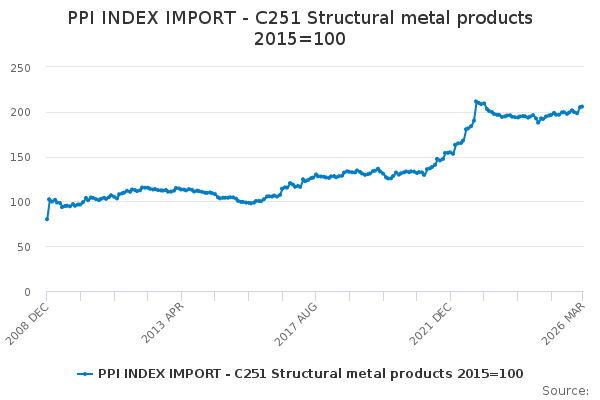 Download this time seriesPPI INDEX IMPORT - C251 Structural metal products 2015=100