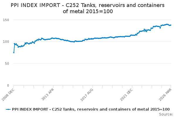 Download this time seriesPPI INDEX IMPORT - C252 Tanks, reservoirs and containers of metal 2015=100