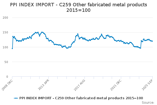 Download this time seriesPPI INDEX IMPORT - C259 Other fabricated metal products 2015=100