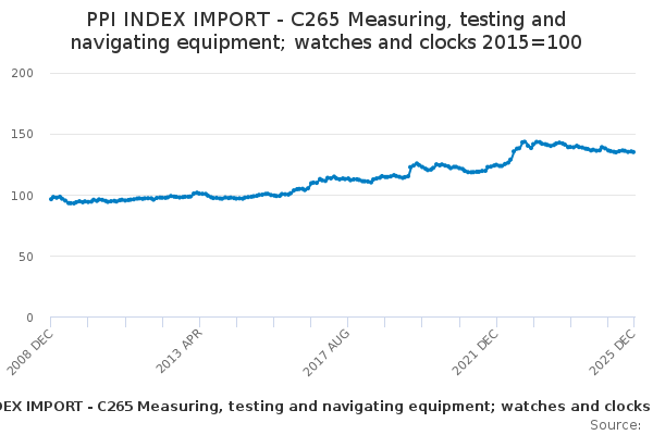 Download this time seriesPPI INDEX IMPORT - C265 Measuring, testing and navigating equipment; watches and clocks 2015=100