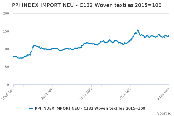 Download this time seriesPPI INDEX IMPORT NEU - C132 Woven textiles 2015=100