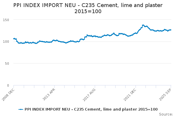 Download this time seriesPPI INDEX IMPORT NEU - C235 Cement, lime and plaster 2015=100