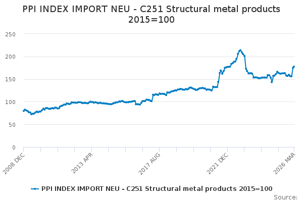 Download this time seriesPPI INDEX IMPORT NEU - C251 Structural metal products 2015=100