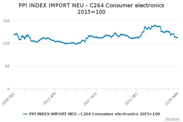 Download this time seriesPPI INDEX IMPORT NEU - C264 Consumer electronics 2015=100