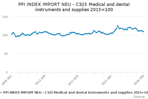 Download this time seriesPPI INDEX IMPORT NEU - C325 Medical and dental instruments and supplies 2015=100