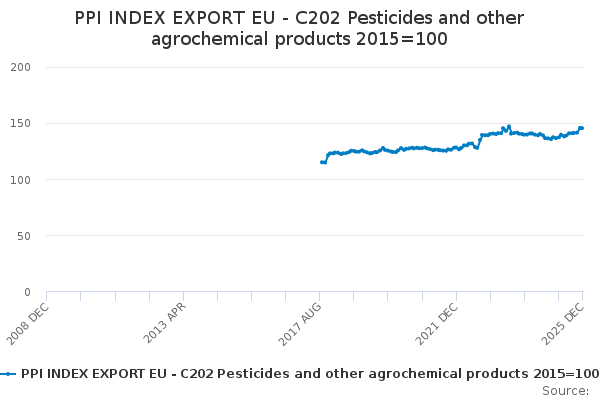 Download this time seriesPPI INDEX EXPORT EU - C202 Pesticides and other agrochemical products 2015=100