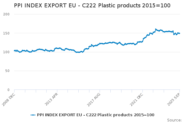 Download this time seriesPPI INDEX EXPORT EU - C222 Plastic products 2015=100