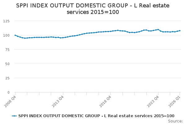 Download this time seriesSPPI INDEX OUTPUT DOMESTIC GROUP - L Real estate services 2015=100