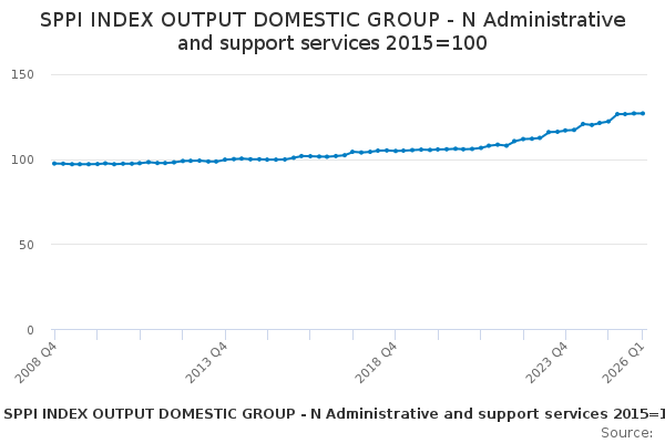 Download this time seriesSPPI INDEX OUTPUT DOMESTIC GROUP - N Administrative and support services 2015=100