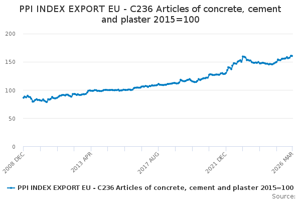 Download this time seriesPPI INDEX EXPORT EU - C236 Articles of concrete, cement and plaster 2015=100