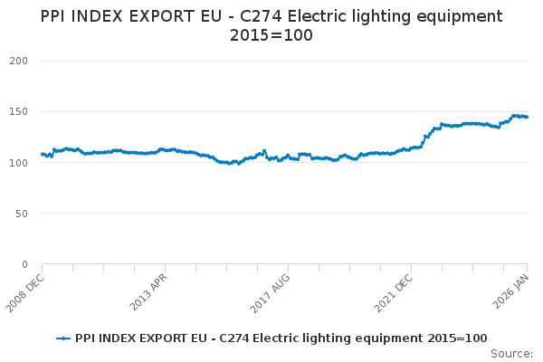 Download this time seriesPPI INDEX EXPORT EU - C274 Electric lighting equipment 2015=100