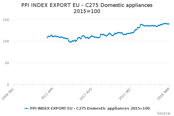 Download this time seriesPPI INDEX EXPORT EU - C275 Domestic appliances 2015=100