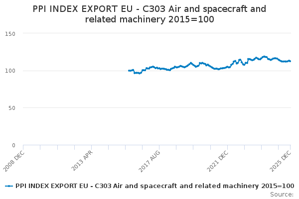 Download this time seriesPPI INDEX EXPORT EU - C303 Air and spacecraft and related machinery 2015=100