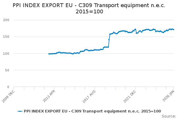 Download this time seriesPPI INDEX EXPORT EU - C309 Transport equipment n.e.c. 2015=100